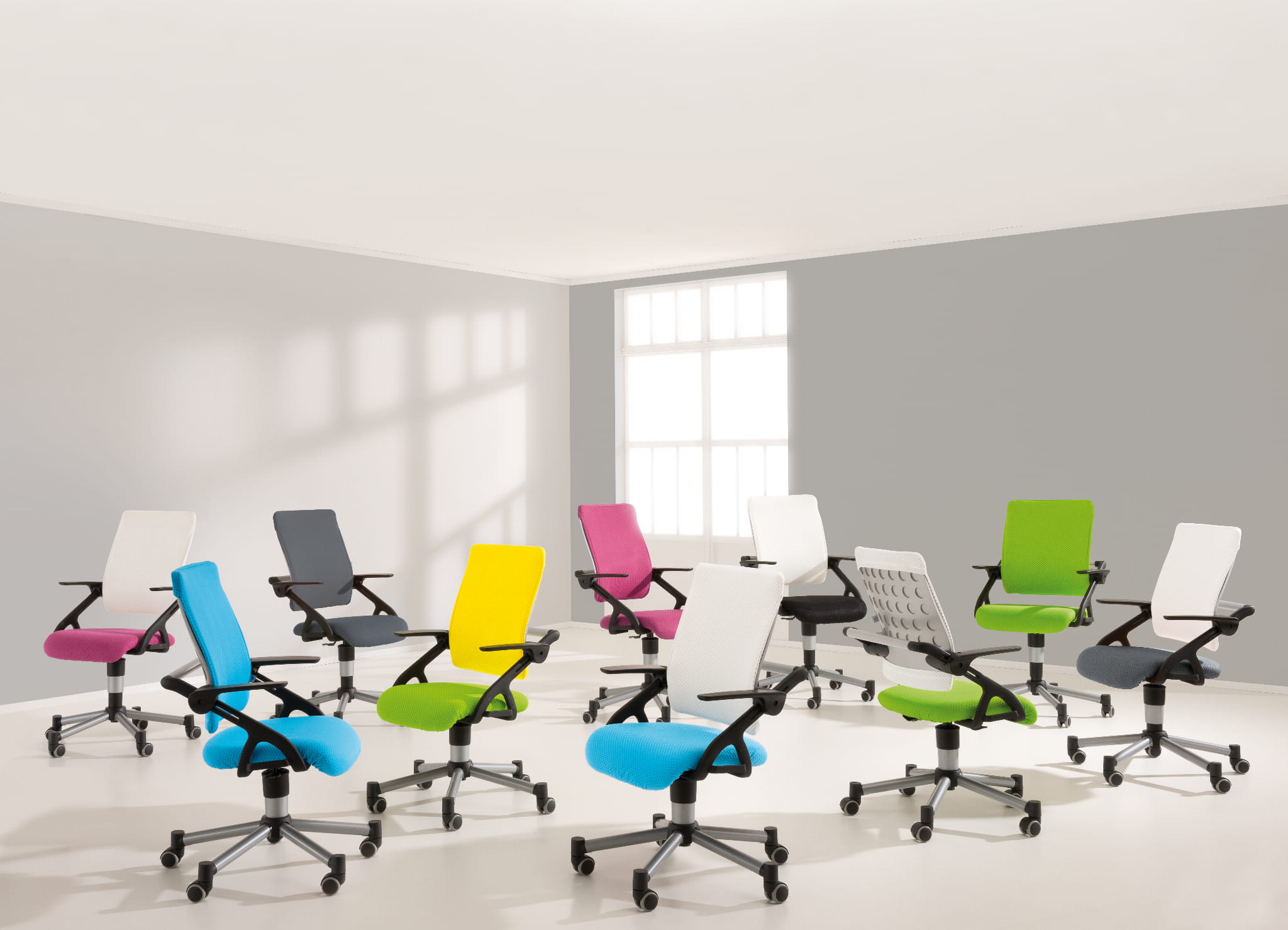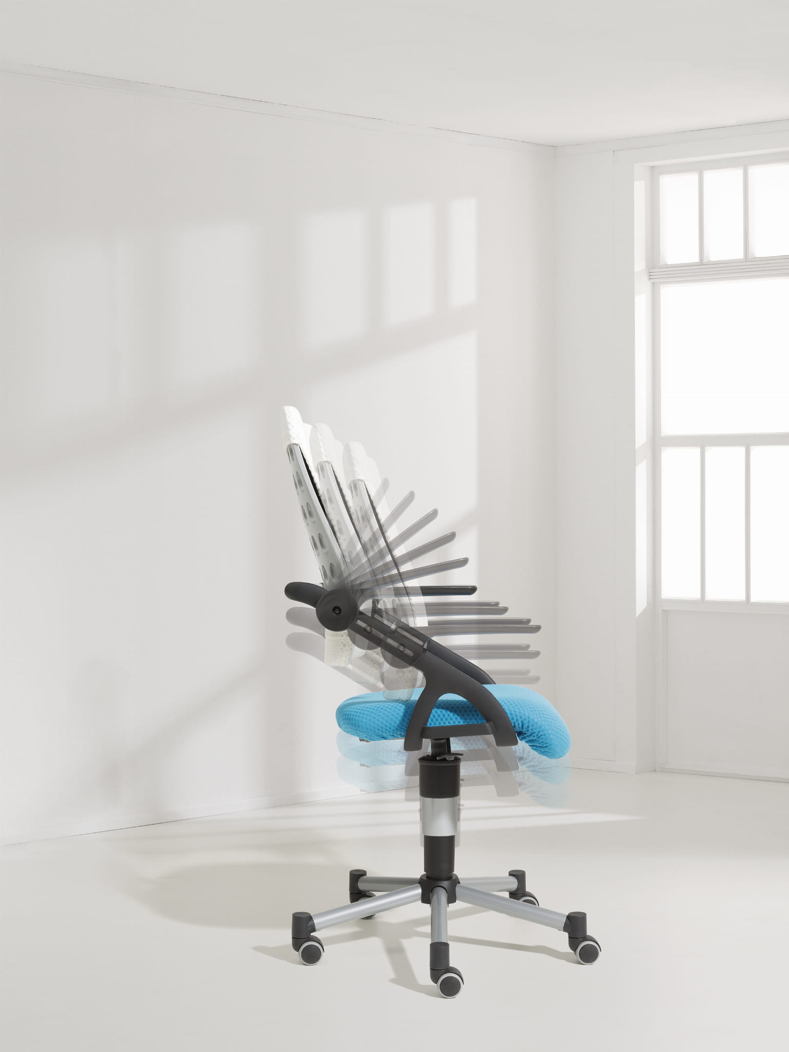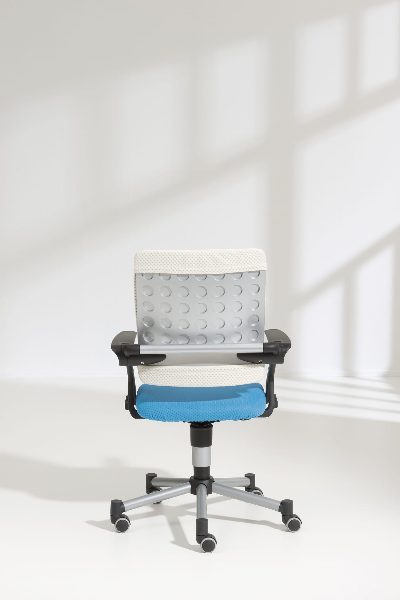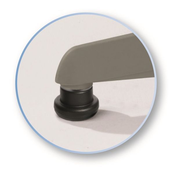 Krzesło posiada hamujące, w zależności od obciążenia, podwójne kółka do miękkich i twardych podłóg. Kółka mogą być zastąpione specjalnymi ślizgami (w opcji).