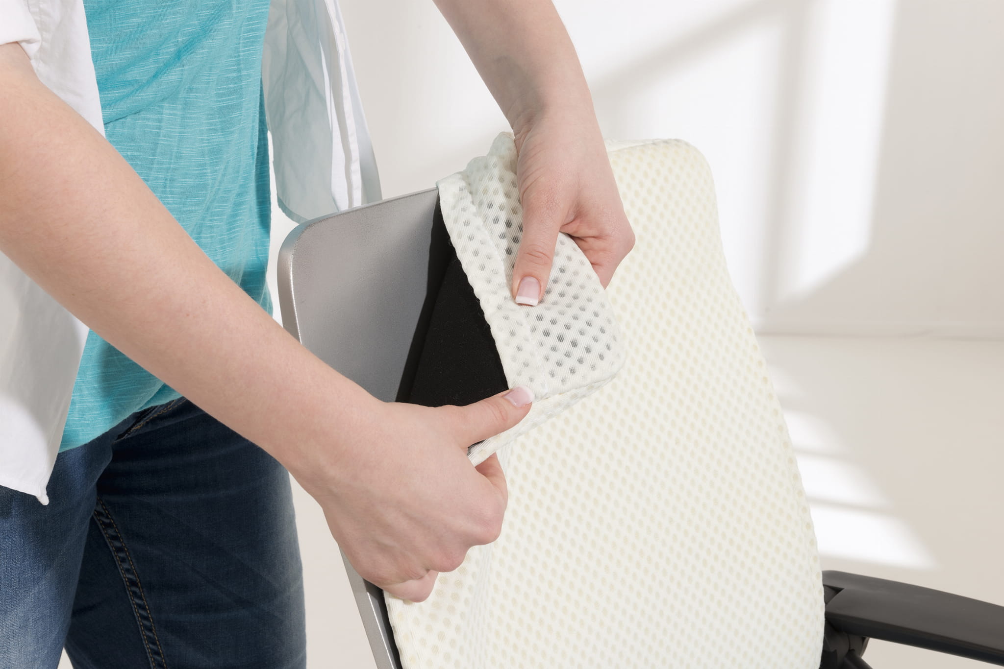 Tapicerka wykonana jest z aktywnej i oddychającej maty z poliestru. Pokrowce można zdjąć do prania w 30st.C. Są wyjątkowo odporne na ścieranie, a ich kolory na działanie światła.