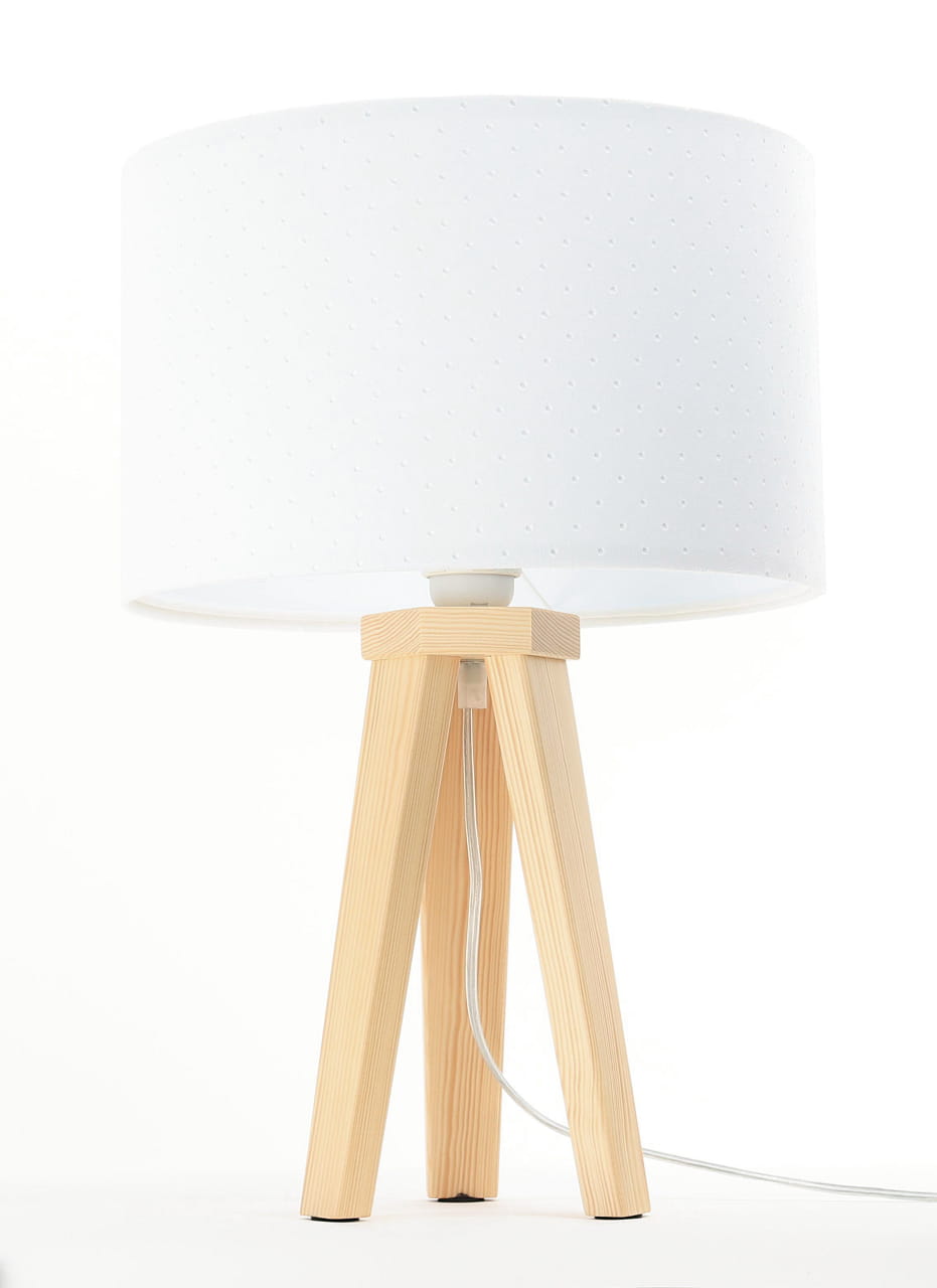 Lampka na stolik nocny w stylu skandynawskim. Idealnie wpasuje się w subtelne, pełne naturalnych materiałów i akcentów wnętrza dziecięcych pokojów. Lampa jest wyprodukowana przez polskiego producenta BPS KONCEPT. Jest to produkt wysokiej jakości, wykonywany każdorazowo ręcznie pod zamówienie.