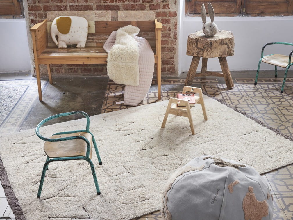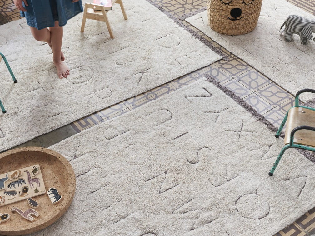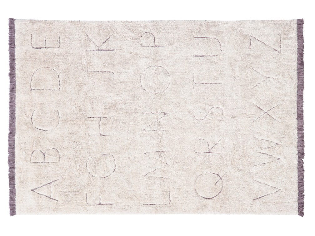 Prostokątny dywan RugCycled ABC w naturalnej kolorystyce idealnie sprawdzi się w pokoju dziecka. Miękkie sylwetki liter są niewypełnione, starannie zarysowane przez naszych rzemieślników, ukazując kontrastową podstawę płótna. Dywan wykończony jest 5 cm frędzlami wychodzącymi z płótna.