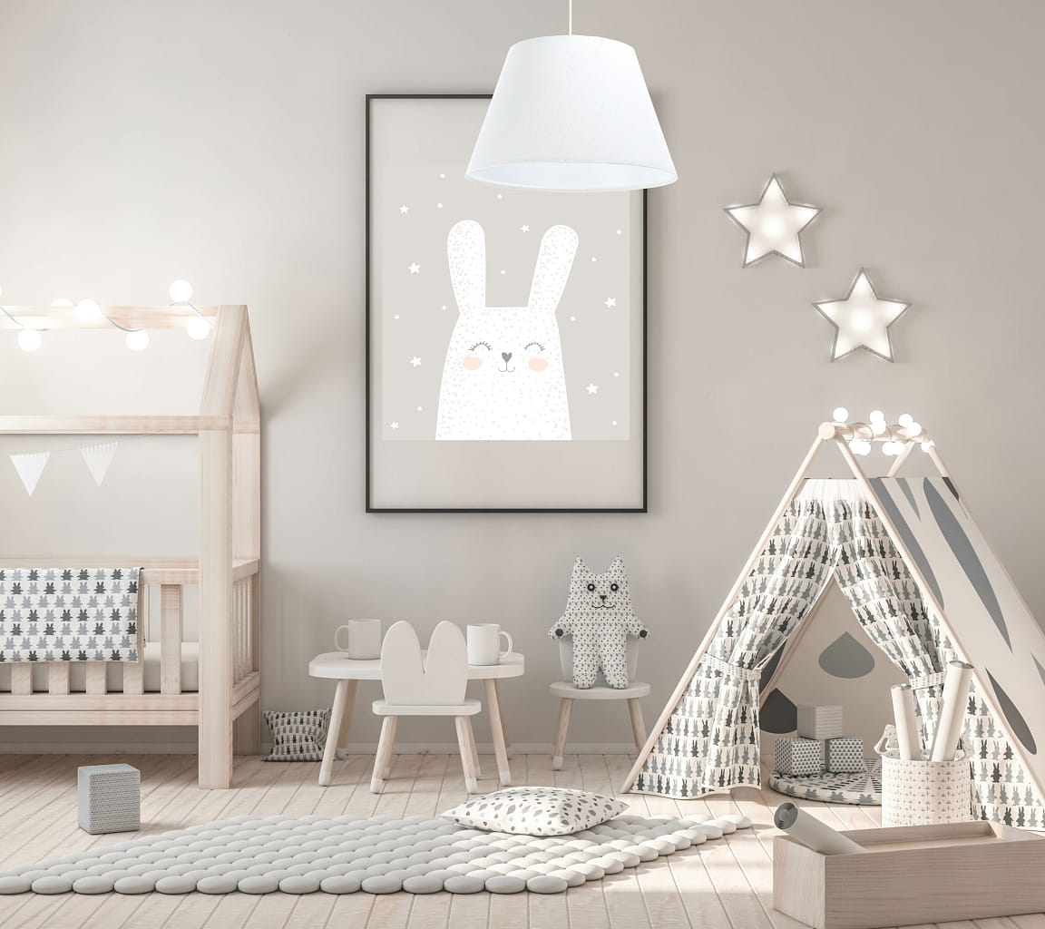 Wysokiej jakości, ręcznie wykonana lampa wisząca z pojedynczym abażurem od polskiego producenta BPS KONCEPT. Cechuje ją ponadczasowy styl. Jest doskonałą propozycją oświetlenia do pokoju niemowlęcego z jednej strony subtelną w wyglądzie, a z drugiej dzięki pikowaniu tkaniny niesztampową.