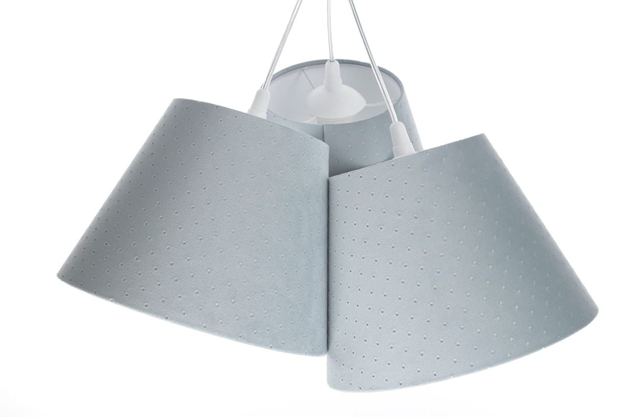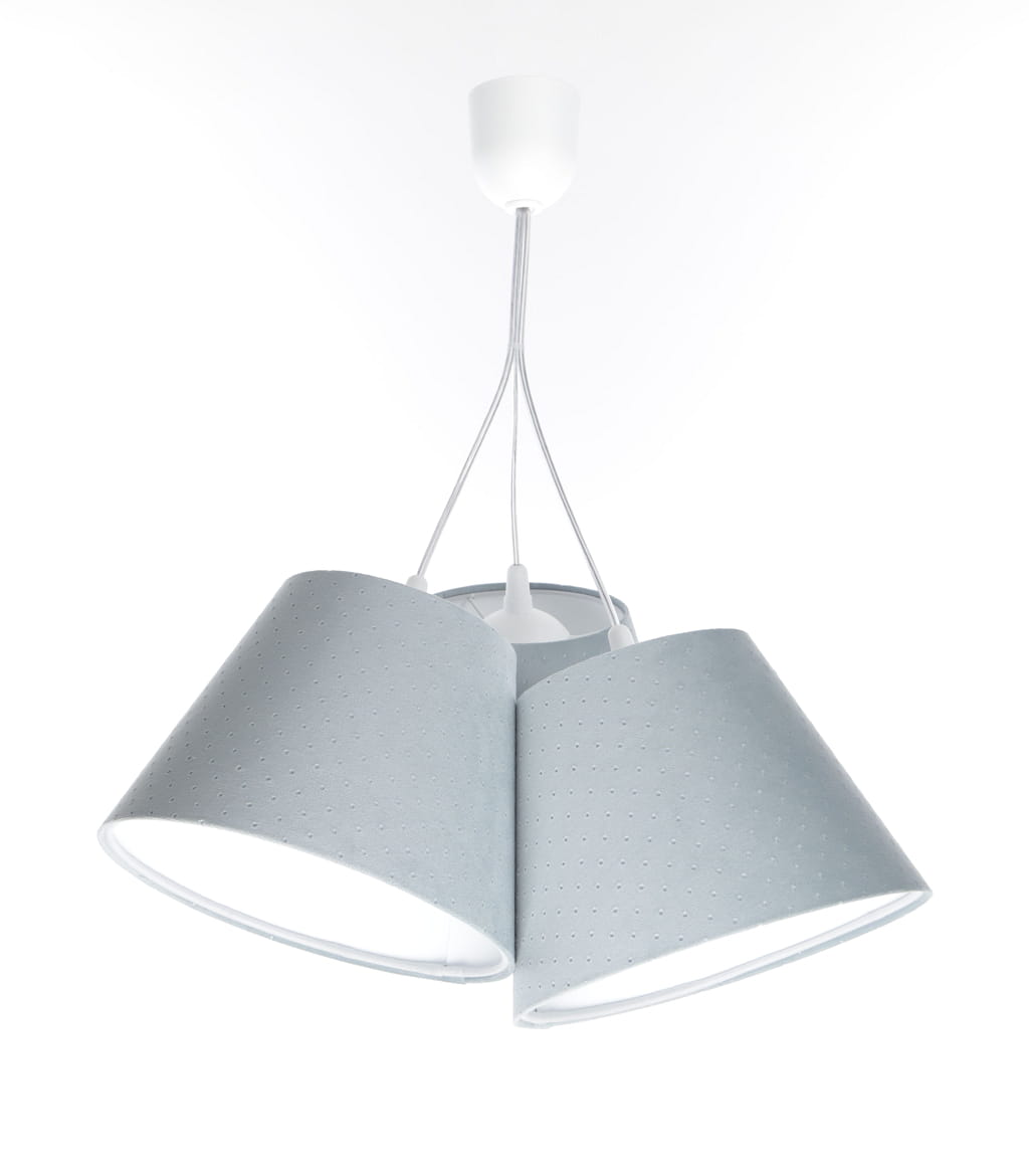 Wysokiej jakości, ręcznie wykonana lampa wisząca z potrójnym abażurem od polskiego producenta BPS KONCEPT. Cechuje ją ponadczasowy styl. Jest doskonałą propozycją oświetlenia do pokoju niemowlęcego z jednej strony subtelną w wyglądzie, a z drugiej dzięki pikowaniu tkaniny niesztampową.