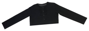Bolerko jest w kolorze czarnym, zapinane jest na guziczki. U góry przy zapięciu jest mały żabocik, który sprawia, że bolerko nabiera odświętnego wyglądu.