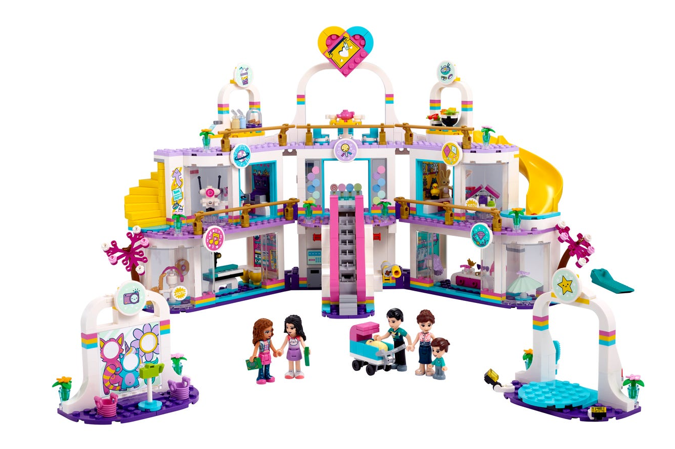 - Zestaw LEGO® Friends Centrum handlowe w Heartlake City (41450) zawiera sześć postaci: cztery minilaleczki LEGO Friends, mikrolaleczkę i figurkę niemowlęcia oraz akcesoria umożliwiające wciągającą zabawę.