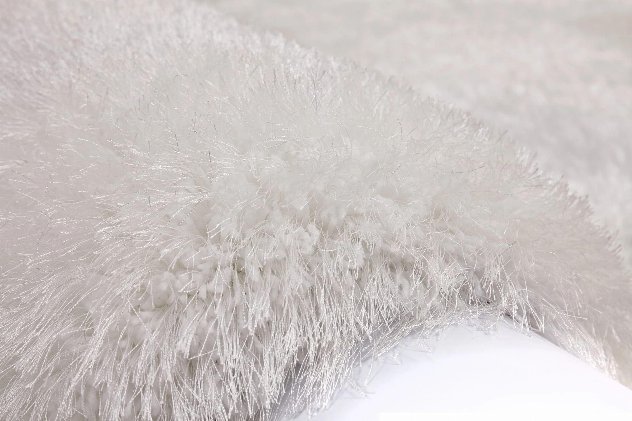 Super miękki i przyjemny w dotyku. Dywan typu shaggy z długim włosiem aż 90 mm to prawdziwy luksus pod stopami. Ręcznie robiony dywan z długim włosiem wygląda niezwykle różnorodnie, ponieważ posiada przędze o różnych grubościach i odcieniach koloru śnieżnej bieli, nadają mu niewiarygodną żywotność. Padające światło tworzy stale zmieniające się efekty i układy na dywanie, ponieważ włókna dywanu tworzą efekt w zależności o ułożenia włosia oraz padającego światła.