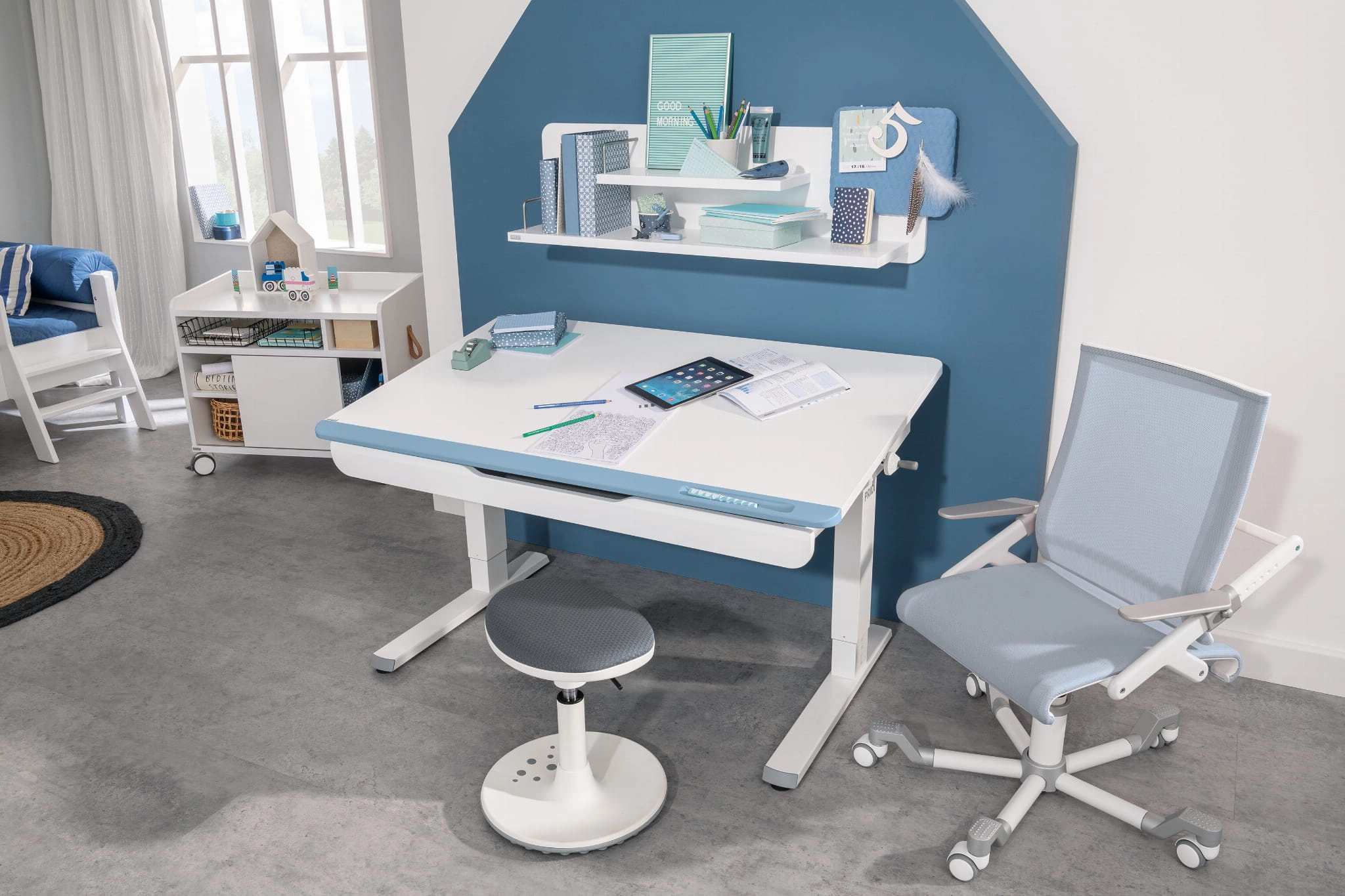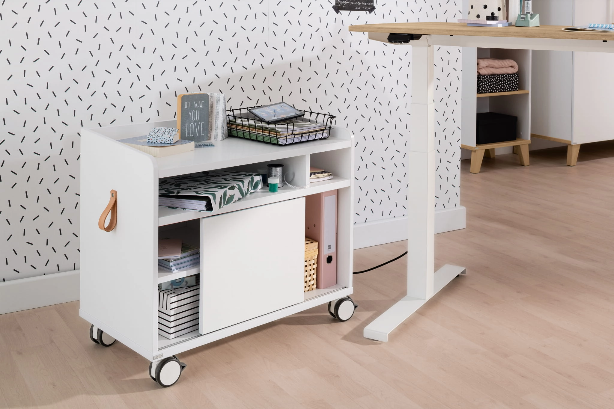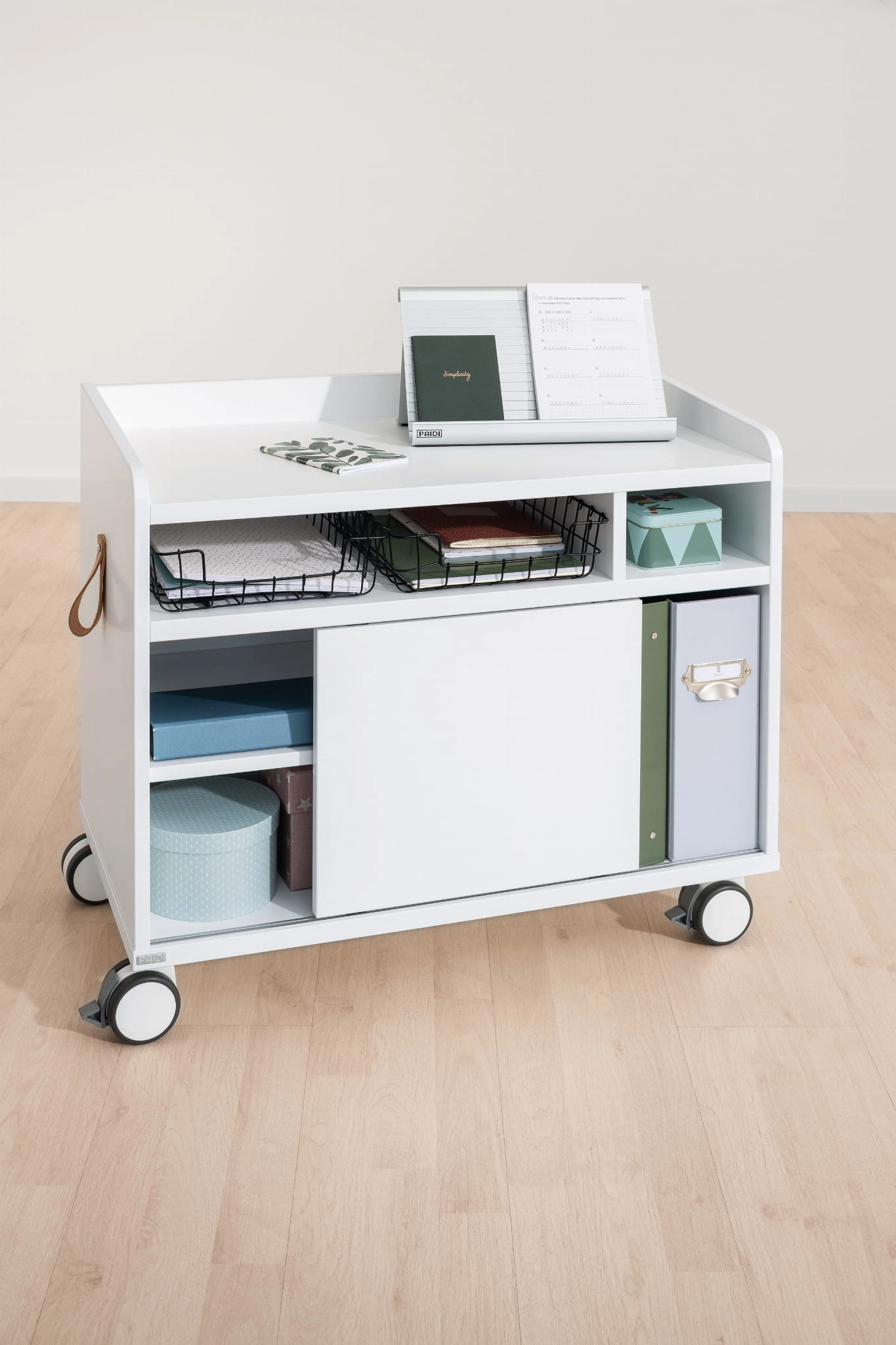 Bardzo uniwersalny kontener do biurek Paidi. Kontenerek o wymiarach 75,0 x 64,9 x 40,5 cm w kolorze białym. Jest uniwersalny przeznaczony do kolekcji biurek Paidi Teenio, pasuję jednak doskonale do pozostałych biurek Paidi w białym kolorze.
