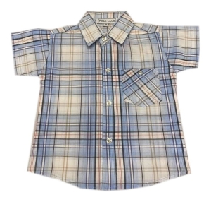 Bawełniana koszula niemowlęca dla małego eleganta. Koszula jest uszyta jak prawdziwa męska koszula z kołnierzykiem, krótkim rękawkiem i kieszonką z guziczkiem na piersi. Koszula zapinana jest na guziczki. Uszyta z wysokogatunkowej bawełny.