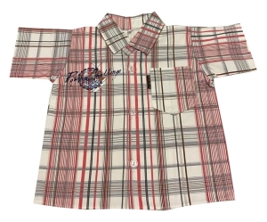 Bawełniana koszula niemowlęca dla małego eleganta. Koszula jest uszyta jak prawdziwa męska koszula z kołnierzykiem, krótkim rękawkiem i kieszonką na piersi. Z przodu i z tyłu ma również typowo męska aplikację. Zapinana na guziczki. Uszyta z wysokogatunkowej bawełny.