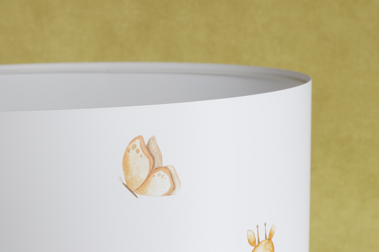 Nadruk jest odporny na promieniowanie UV dzięki czemu lampa nie ulega blaknięciu. Lampa wykonywana ręcznie w Polsce posiadająca wszystkie niezbędne atesty aby mogła być użytkowana w pokojach dziecięcych.