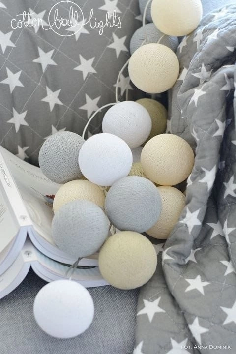 Cotton Balls to popularna dekoracja do pokoju dziecięcego, zapewnia delikatne, nie oślepiające światło, które świetnie się sprawdzi przy zasypianiu, a jednocześnie pozwoli na poczytanie dziecku na dobranoc. Kule nie nagrzewają się, można je zostawić włączone przez całą noc, aby dziecko nie spało w całkowitej ciemności.