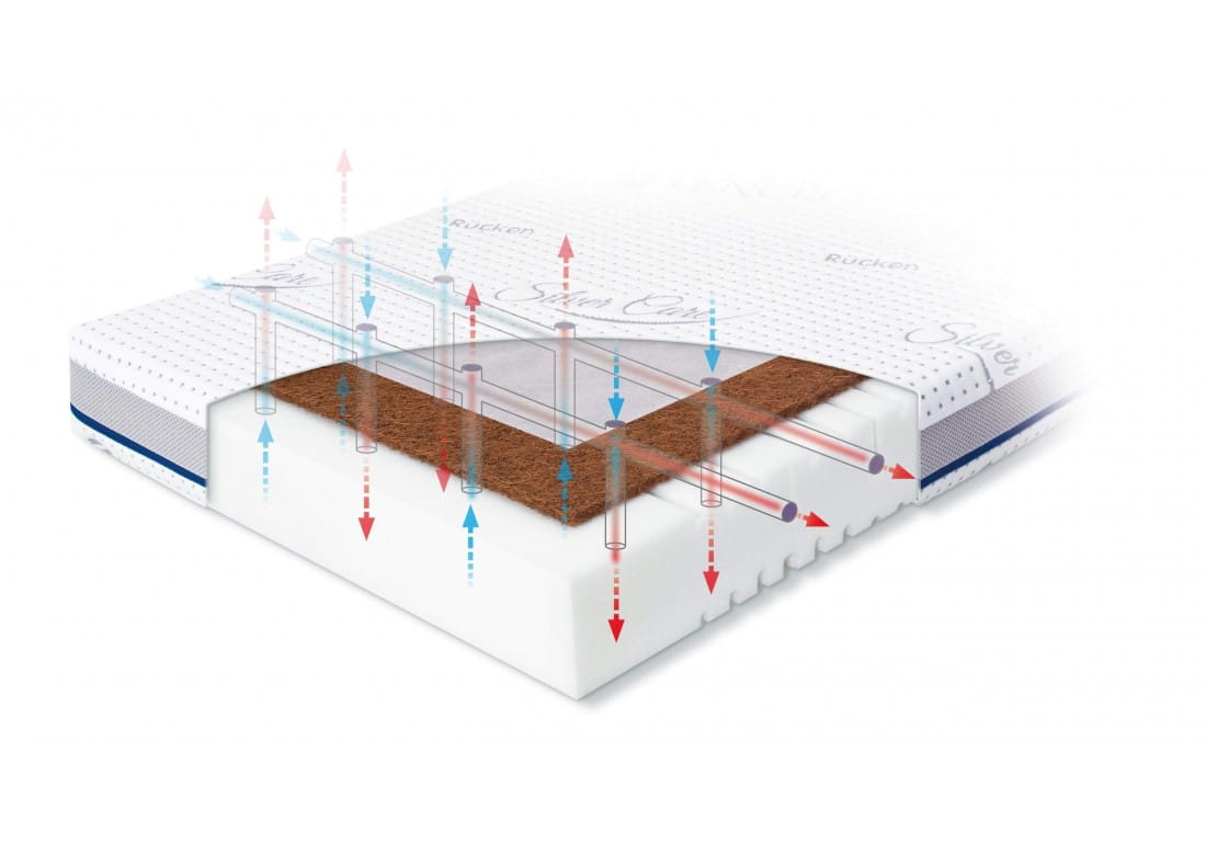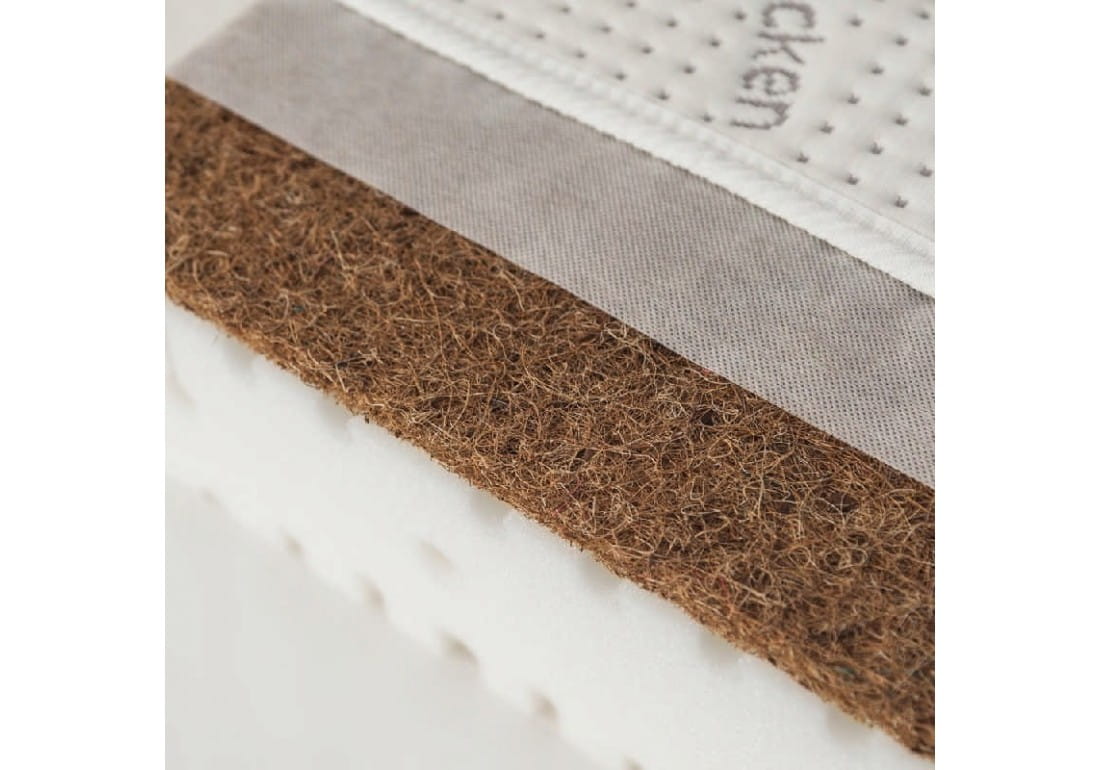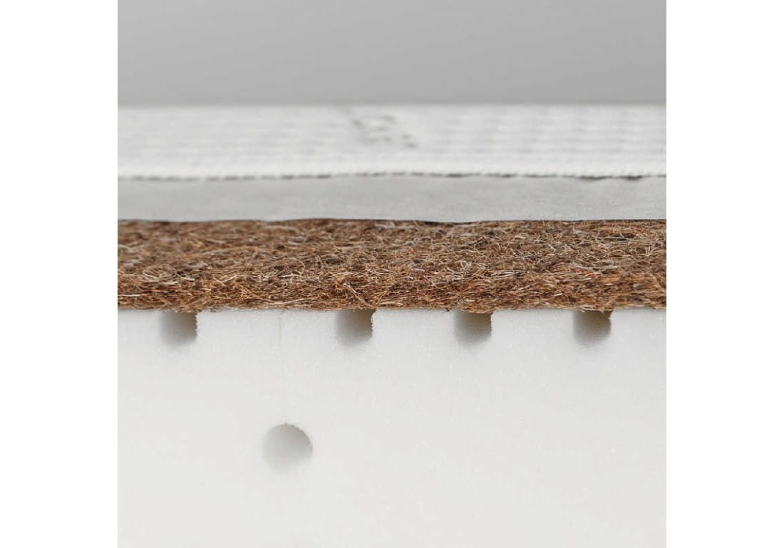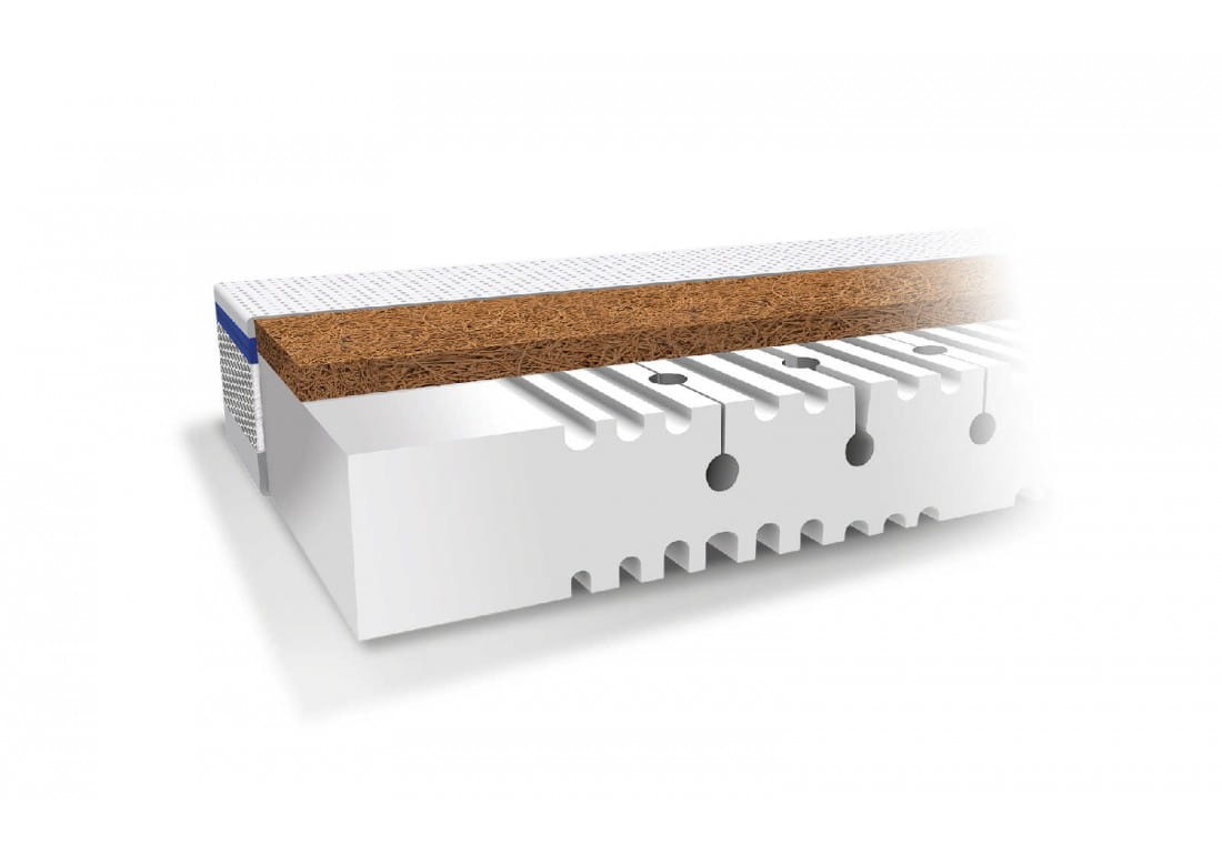 Warstwa z włókien kokosowych pochodzenia naturalnego to jeden z elementów materaca Natura. Włókna te charakteryzują się dobrymi właściwościami wentylacyjnymi oraz dają twardą powierzchnię do spania. Kanaliki wentylacyjne umiejscowione pod matą kokosową wzmacniają przepływ powietrza.
