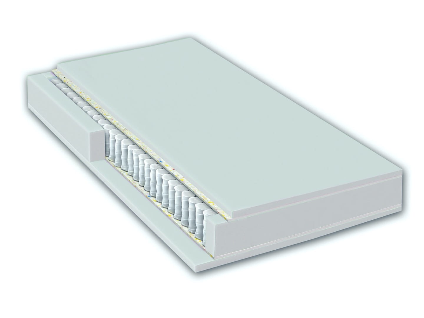 BUDOWA: nowoczesne, najwyższej jakości, lekkie sprężyny kieszeniowe – wysokości 12 cm – DIN E 10270 z przekładką z tkaniny polimerowej, wykończone ramką stalową. Formatki sprężynowe kieszeniowe 3 strefy, 260 sprężyny/m2. Każda pojedyncza sprężyna zapakowana jest w odrębną kieszonkę z wytrzymałej i oddychającej tkaniny. Opakowanie każdej pojedynczej sprężyny w materiał gwarantuje niemal bezgłośną pracę. Kieszenie zapewniają punktową elastyczność całego materaca, co nadaje mu właściwości rehabilitacyjne. Każda sprężyna pracuje niezależnie dając optymalne podparcie w miejscu nacisku. Formatka kieszeniowa zamknięta jest w oddychającym kasetonie z pianki wysokoelastycznej o dużej gęstości i grubości 2 cm. Materac jednostronnie wykończony lateksem Blue Ocean – bez użycia kleju. Strona lateksowa zapewnia szybką wymianę powietrza i odprowadzenie wilgoci. Zastosowanie pianek w warstwie zewnętrznej wydłuża realny czas użytkowania produktu zapewniając jednocześnie odpowiednią cyrkulację powietrza wewnątrz całego materaca. Pokrowiec wewnętrzny z membrany pełni funkcję higieniczną. Pokrowiec można swobodnie zdjąć (taśma suwakowa z 3 stron). Zaleca się delikatne pranie w temp. 60C. Dzianina pokrowca: NATURAL CARE AEGIS (gramatura 300g) bawełna/poliester, pikowana antyalergiczną włókniną klimatyzowaną o gramaturze 100g. Opcjonalnie dostępny pokrowiec z dzianiny ALOE GREEN POWER wiskoza/poliester z dodatkiem żelu aloesowego – pokrowiec gładki, bez pikowania. Certyfikaty dzianin: EKO-TEX Standard 100 i Bezpieczny dla dziecka. Waga materaca od 10 kg do 14 kg. Wysokość materaca około 20 cm.