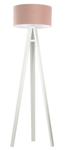 Lampa stojąca JASMIN BEBE na białej, drewnianej podstawie z pudroworóżowym, welurowym abażurem