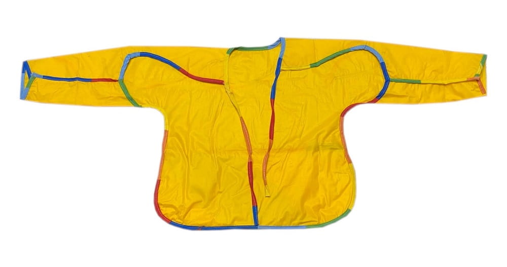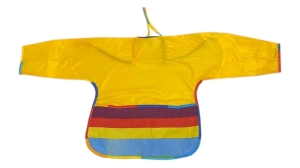 Duży śliniak z rękawkami do nauki jedzenia lub prac plastycznych, przeznaczony dla dzieci w wieku 2-3 lata. Wykonany jest z miękkiego i trwałego winylu. Z tyłu zawiązywany na troczki. Z dużą kieszenią.